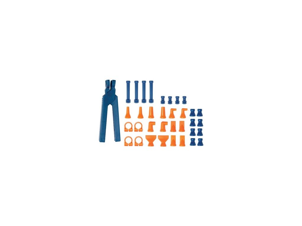 Obsahuje: 4x 15mm krátky adaptér 4x 15mm x 2" dlhý adaptér 2x rozprašovacia 5ti tryska 2x štrbinová tryska 2x tryska 90° 3,18 mm 2x tryska 90° 6,35 mm 2x tryska 3,18 mm 2x tryska 6,35 mm 2x prúdová tryska 4x svorka 8x segment 1x kliešte
