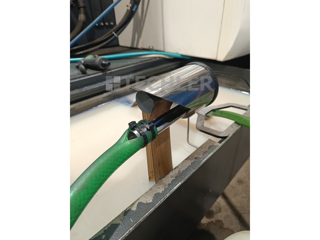 Na pripojenie odlučovača použite adaptér. Po pripojení začne odlučovač oleja odstraňovať všetky povrchové oleje, ktoré sa môžu nachádzať na povrchu obrábacej kvapaliny.