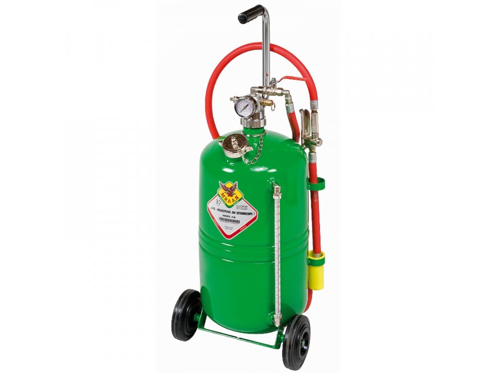 Vhodné pre oleje s vyššou viskozitou. Pri naplnení nádoby max. do 4/5 a natlakovaní na 6 – 7 barov, pracuje samostatne bez nutnosti napojenia na rozvod stlačeného vzduchu. Vhodné na plnenie motorov, prevodoviek, diferenciálov, hydraulických systémov atď. Nádoba je vybavená stavoznakom na kontrolu množstva kvapaliny v nádobe.