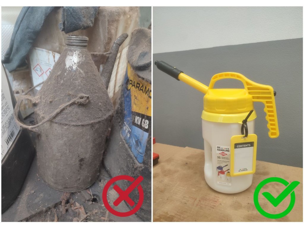 Uzavreté a farebne rozlíšené nádoby pre manipuláciu s olejmi v prevádzke. Chránia oleje pred znečistením a farebné kódovanie zabraňuje zámene olejov.